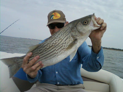 The annual sand bass run has begun and we are catching big sandies right now. This run will continue for a couple of more weeks. Here is a picture of how big they can get this time of year.